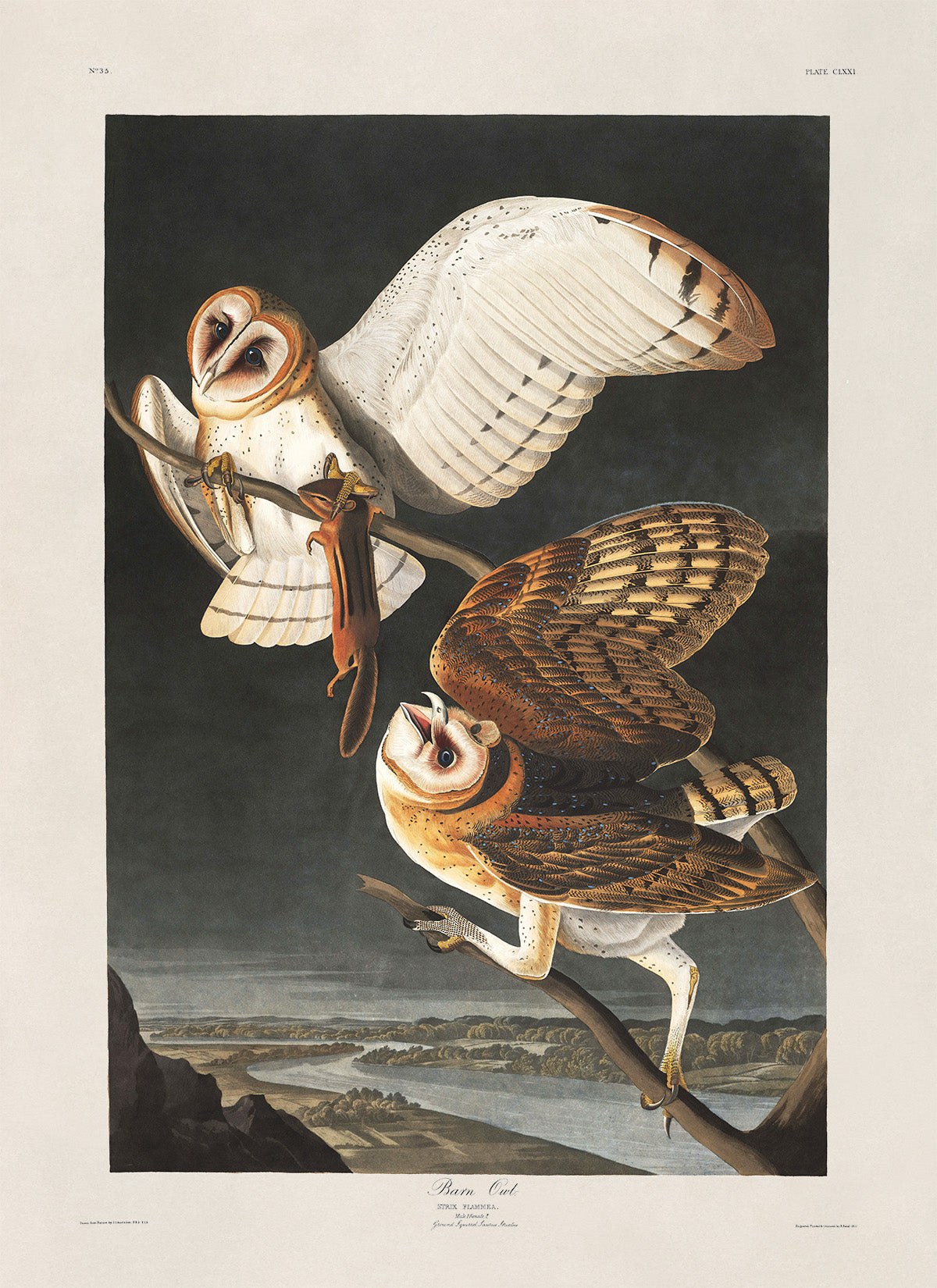 Barn Owl Print, Vintage Style Audubon Birds Of America Illustration, AOB169