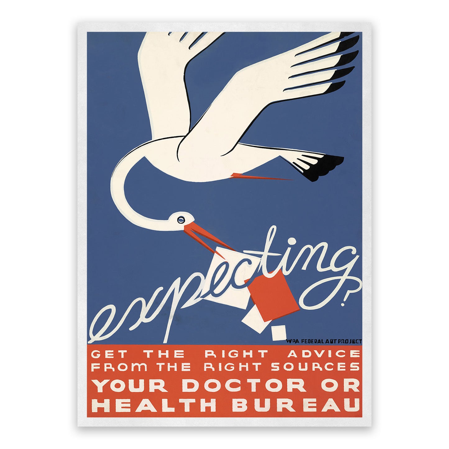 Expecting? Get the right advice from the right sources, your doctor or health bureau. WPA Federal Art Project. Circa 1936