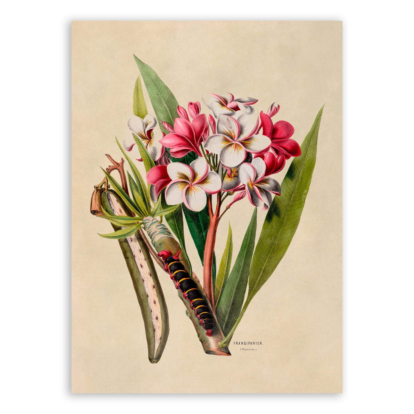 Frangipani Plumeria Flower Plant Botanical Illustration Print, FDA12