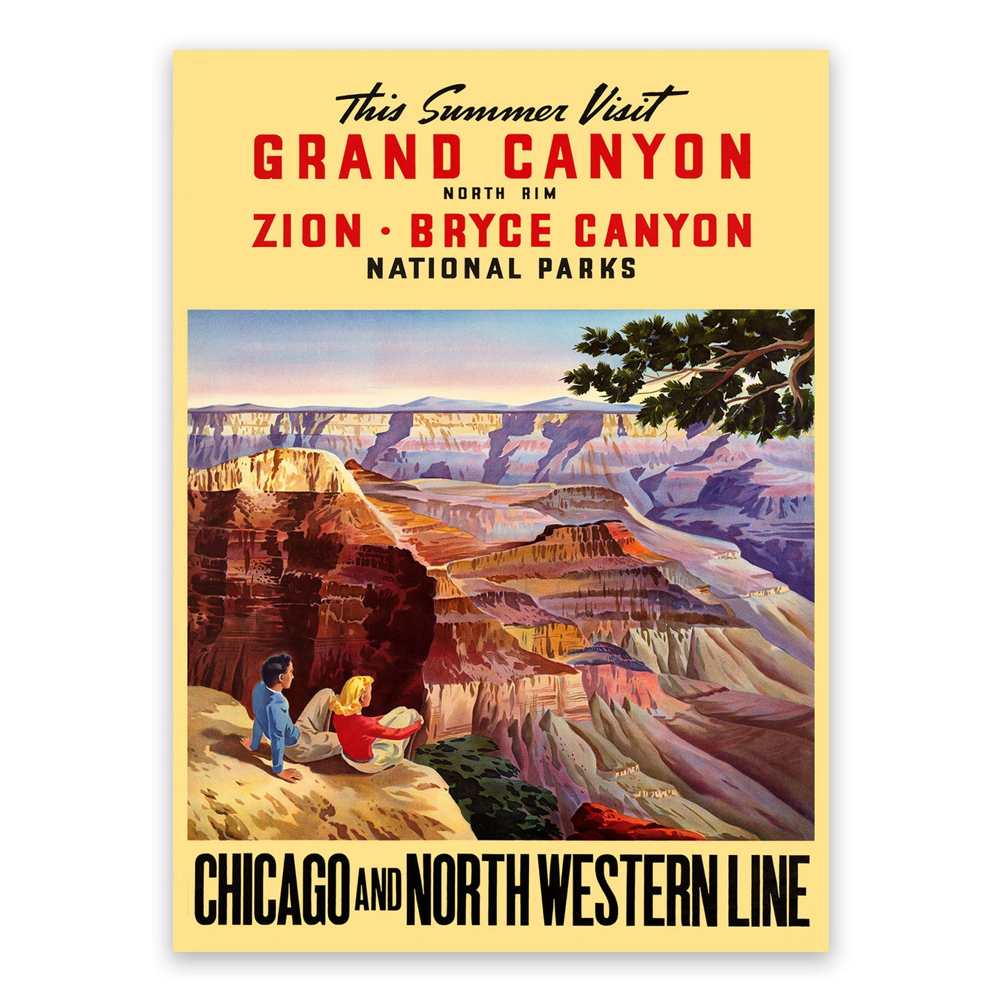 Grand Canyon, Zion, Bryce Canyon Travel Advertisement Poster. From the golden age of travel posters this vintage style print features an early 20th century tourism advertisement for the Grand Canyon National Park. Circa Early 1900s.