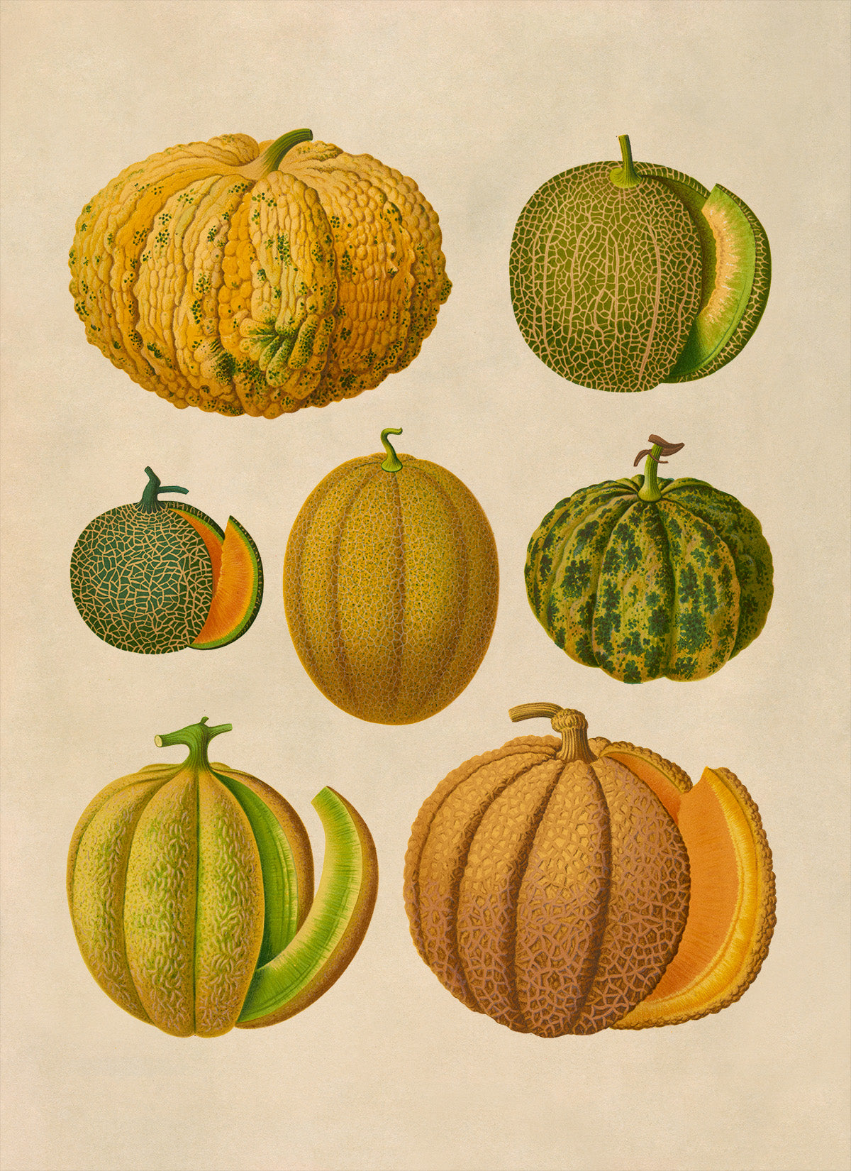 Melon Plant Varieties Illustration, Vintage Style Fruit Fruit Print, EB26