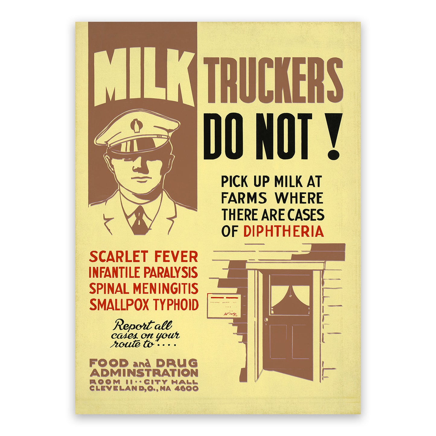 Milk Trucker Disease Prevention and Public Health WPA Federal Art Project Poster, Vintage Style 1930s Works Progress Administration Print
