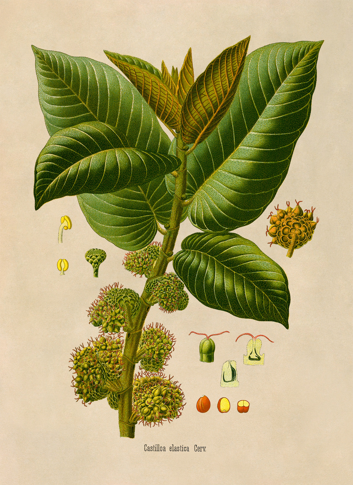 Panama Rubber Tree Botanical Illustration Print, MOBO273