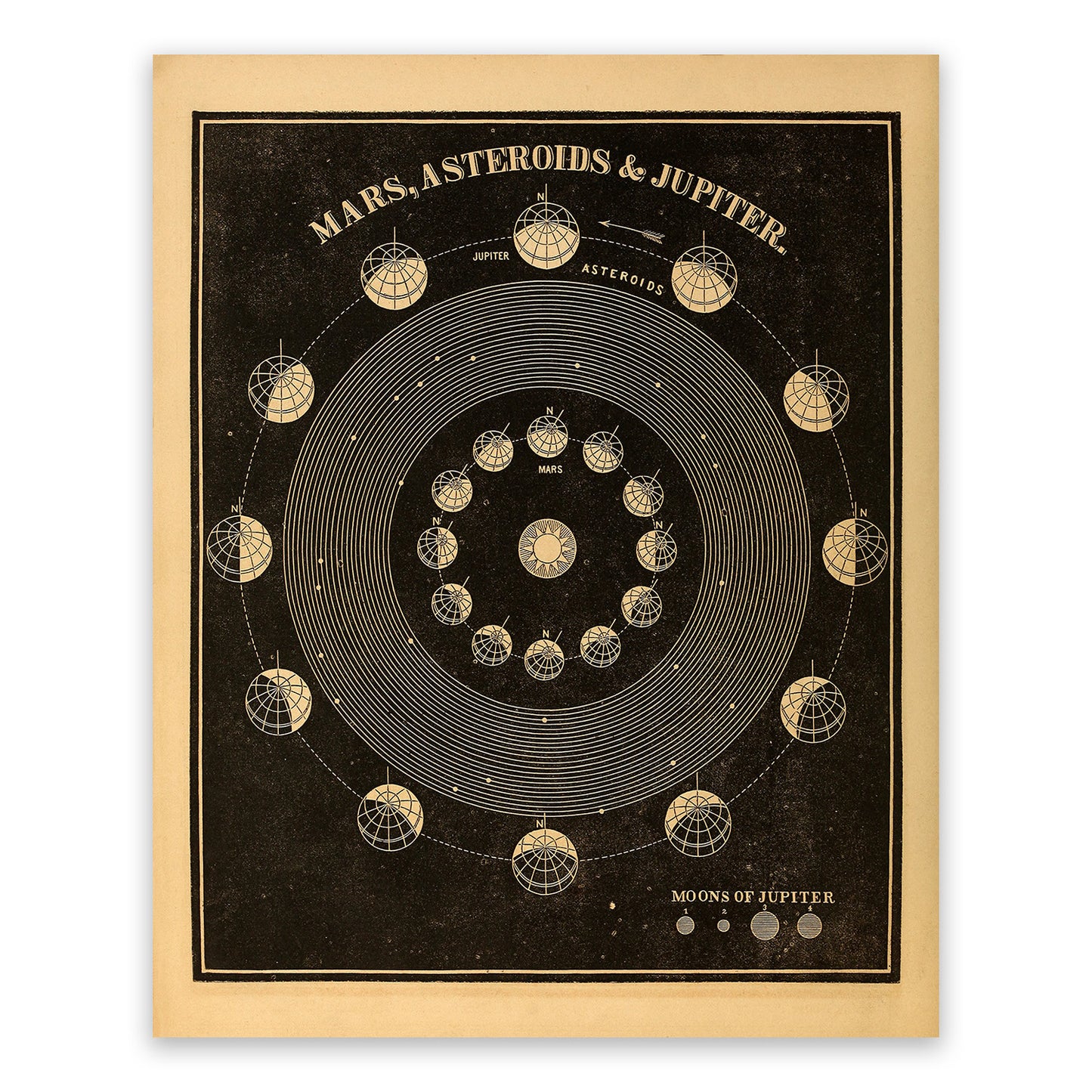 Planet Mars and Planet Jupiter Diagram, Astronomy Chart Illustration Print SIA10