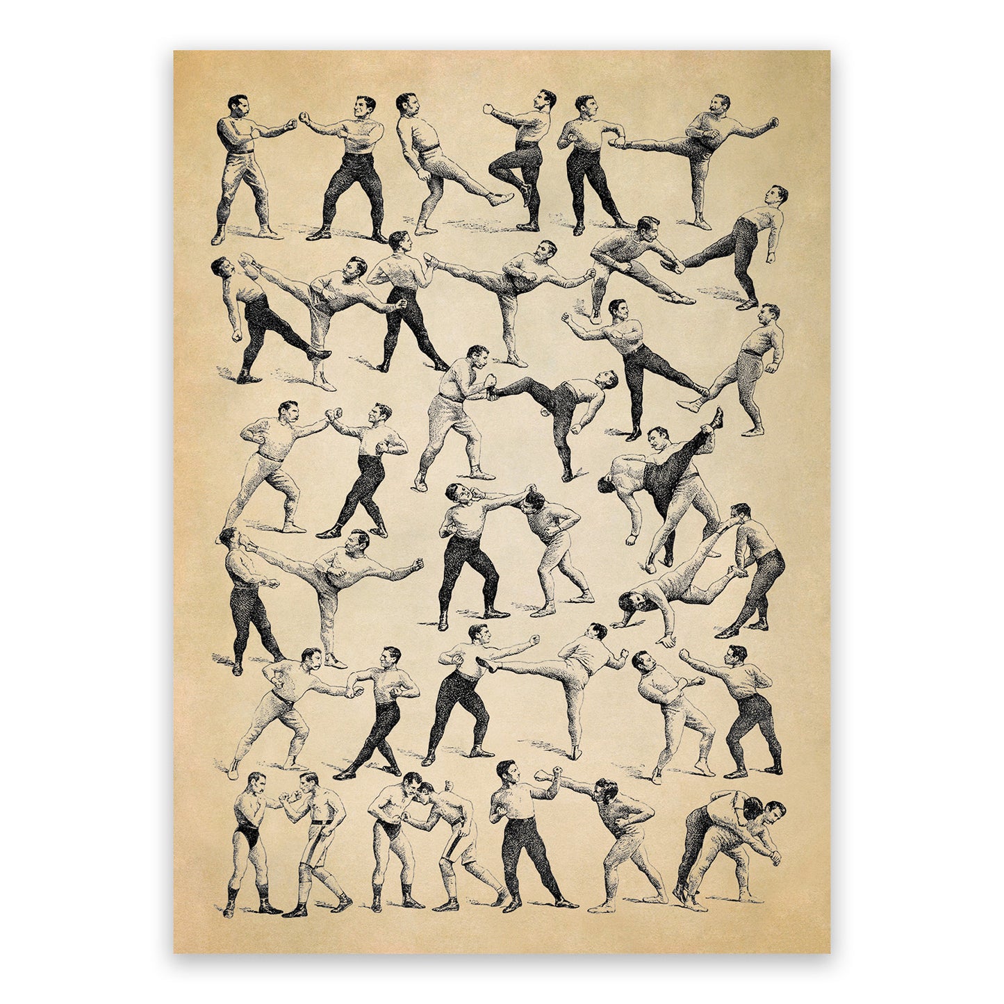 Vintage Boxing and Wrestling Moves Illustration Print, FD30