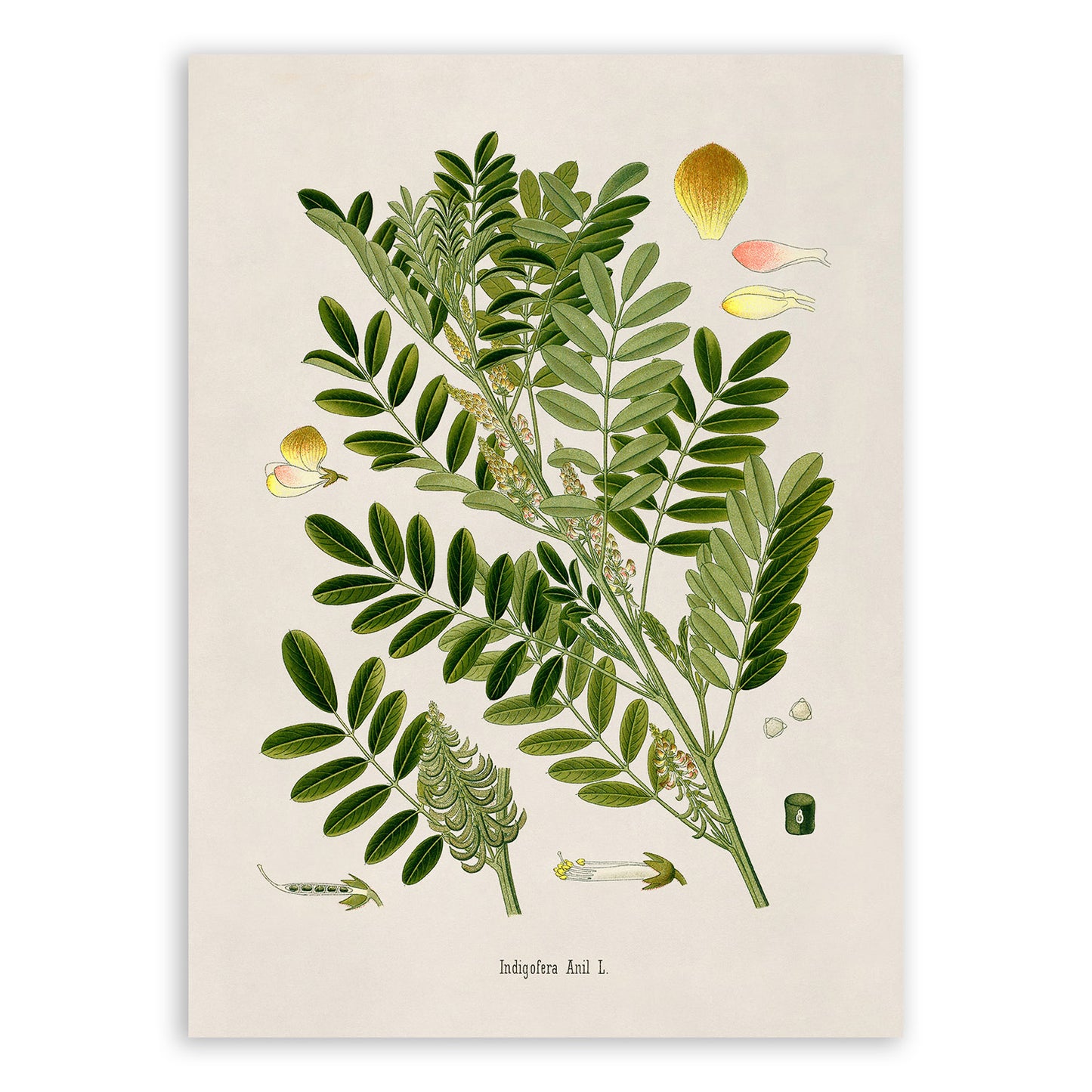 Wild Indigo botanical illustration print from the Kohler's Medicinal Plants collection. Also known as: West Indian Indigo, Anil, Indiofera Sufffruticosa or Indigofera Anil. Circa 1887.